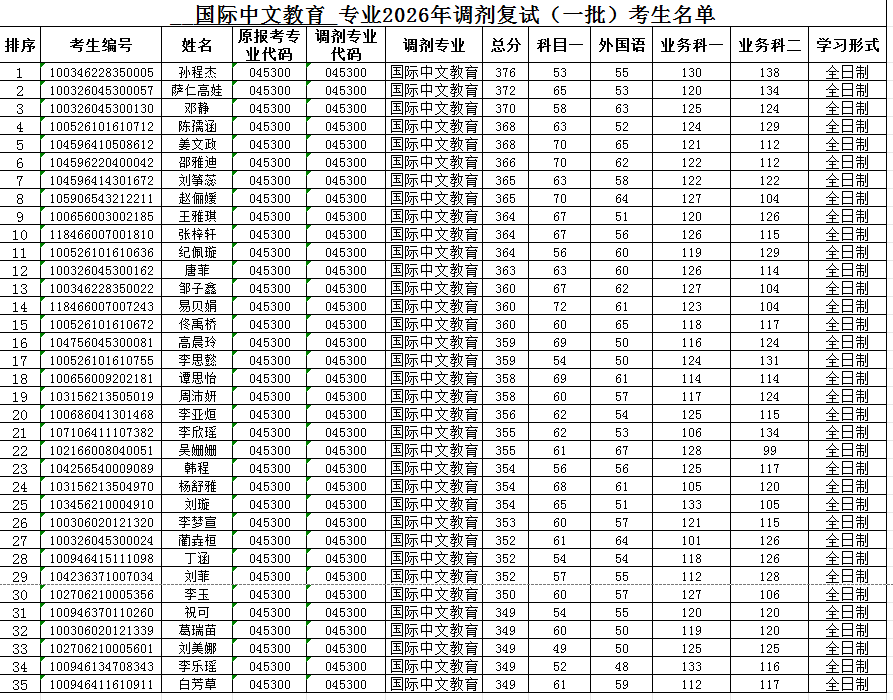 国际中文教育专业2026年调剂复试(第一批)考生名单
